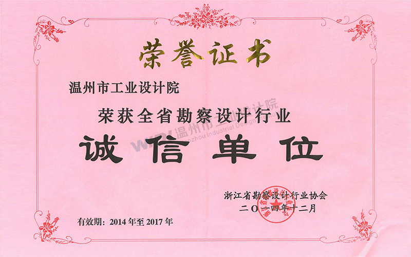 溫州市勘察設(shè)計行業(yè)誠信單位證書2024-2026