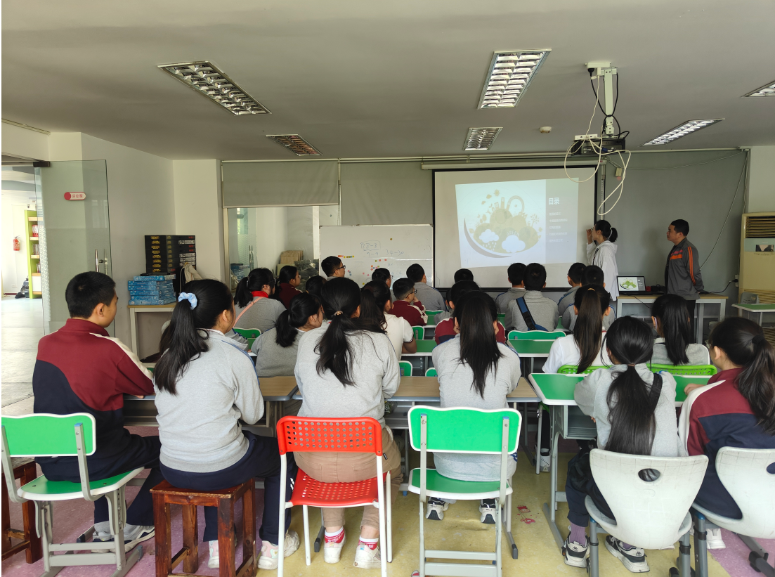 課堂上,黨員邱舒婷以“低碳同行、節(jié)能同心”為主題,用淺顯易懂的語言結(jié)合日常生活實例,向?qū)W生們講解了“能源的定義”、“環(huán)境污染的嚴(yán)重性”、“節(jié)能和環(huán)保的關(guān)系”等環(huán)保知識,同時通過播放環(huán)保短片、展示環(huán)保圖片、開展互動問答等方式使學(xué)生們更直觀、更深刻的認識什么是低碳生活以及如何在日常生活中踐行低碳理念。
