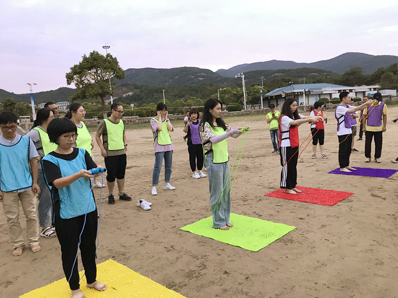 “破冰行動(dòng)”首先拉開(kāi)活動(dòng)序幕,“破冰”即打破員工之間的拘謹(jǐn)和束縛,尤其是兩家單位的陌生感,讓他們?cè)诮酉聛?lái)的活動(dòng)中能積極的參與進(jìn)來(lái)。簡(jiǎn)單的自我介紹認(rèn)識(shí)之后,隊(duì)伍分成四組進(jìn)行競(jìng)賽,“躲避球”考驗(yàn)的是團(tuán)隊(duì)的整體協(xié)調(diào)配合能力;“救生圈接力賽”在裁判的一聲令下,全員接力比賽決勝負(fù),緊張之余又趣味十足;“指壓板跳繩”難度系數(shù)高,讓隊(duì)員們摩拳擦掌,紛紛上場(chǎng)較量各隊(duì)實(shí)力,一起“腳”逐快樂(lè);“聽(tīng)歌識(shí)曲”輪番播放不同年代歌曲讓大家回憶經(jīng)典同時(shí)能猜出歌名?,F(xiàn)場(chǎng)活動(dòng)熱烈,參與人員熱情高漲,笑聲不斷。